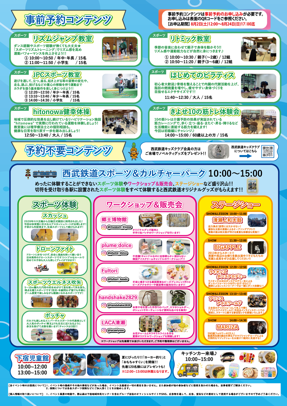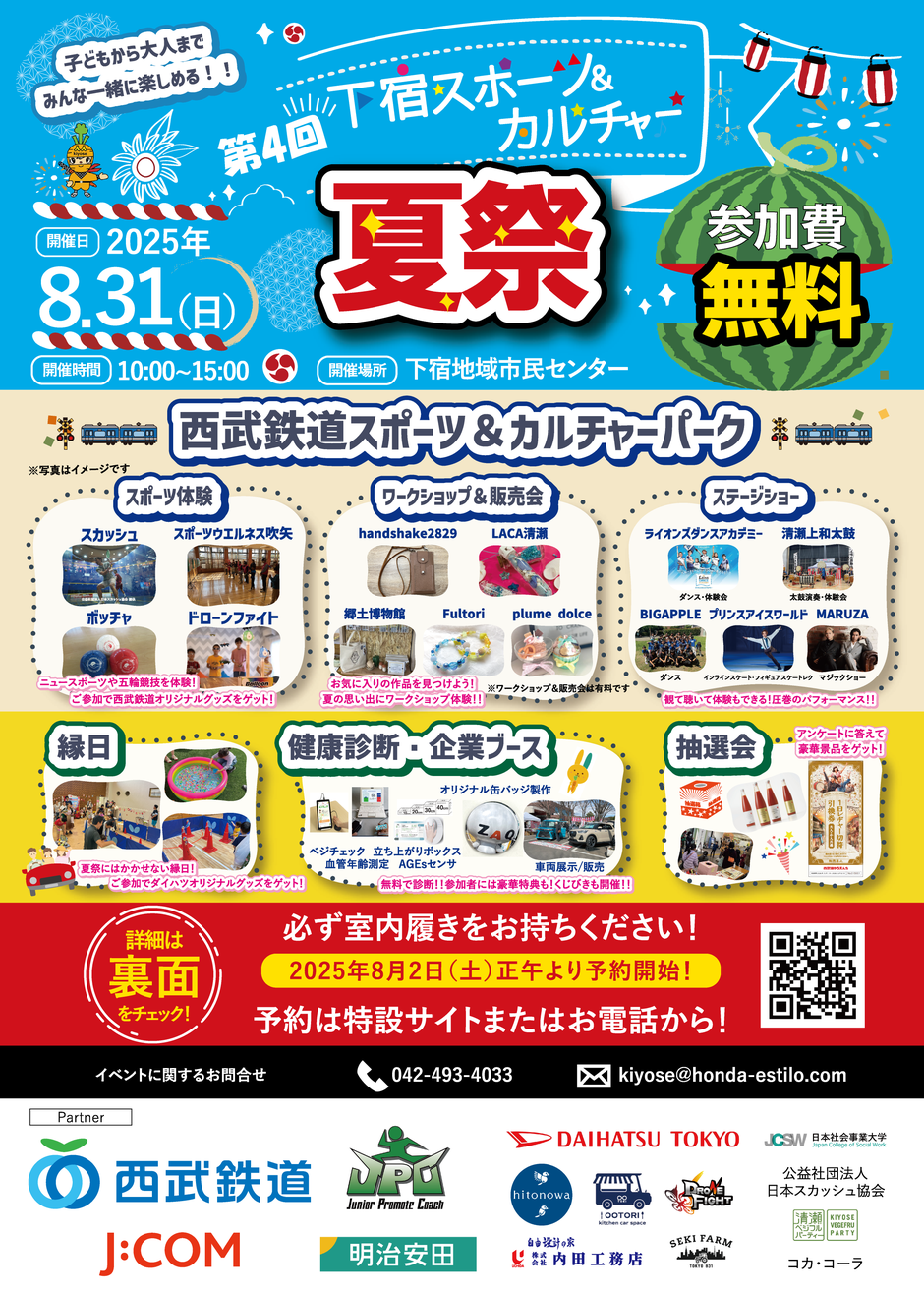 下宿地域最大級のスポーツとカルチャーの祭典!!東京都清瀬市・下宿地域市民センターで、①地域と繋がる ②笑顔あふれる場所の創造 ③スポーツ・カルチャーを体感 をテーマに開催いたします!