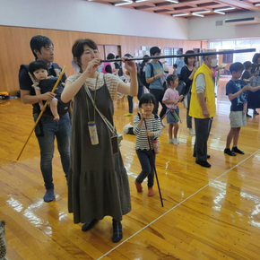 5~10m離れた円形の的をめがけて息を使って矢を放ち、